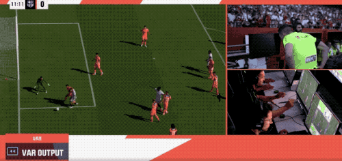 第11分钟,VAR介入,通过慢动作可以看到,和阿劳霍对抗过后,伊萨克·罗梅罗在禁区内倒地,裁判判罚点球。